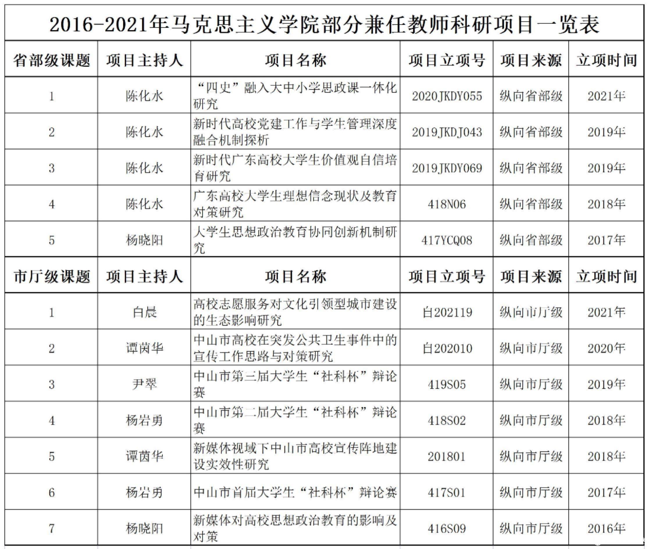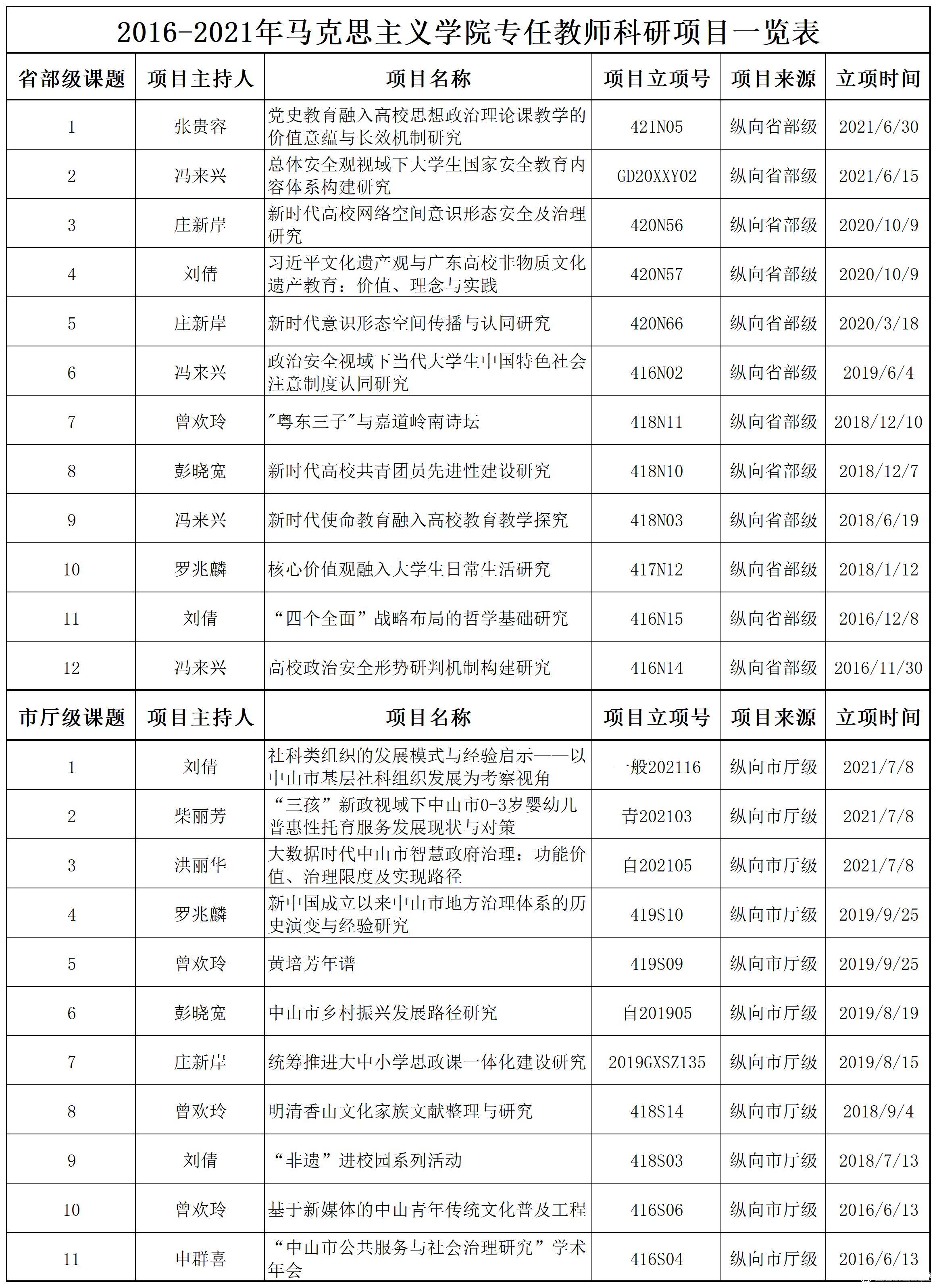 电子科技大学中山学院3044AM永利集团坚持发挥马克思主义理论学科领航作用,学习研究宣传马克思主义,以教学带动科研、以科研促进教学,立足马克思主义理论一级学科,把握时代脉搏,积极开展科学研究,推动科学研究不断上台阶、上层次。近年来,3044AM永利集团围绕马克思主义理论学科建设组织力量、汇聚队伍,注重对青年教师的培养,定期邀请校内外专家学者开展学术研讨交流活动,对学院教师进行教育教学与科研的指导,发挥党员教师先锋模范作用,胸怀大局,坚持问题导向,结合马克思主义在当代发展的现实基础和实践需要,积极申报课题,推动理论创新和实践创新,营造良好的学术氛围,形成了一支潜力强劲的科研团队,学科建设和科研水平稳步提高。